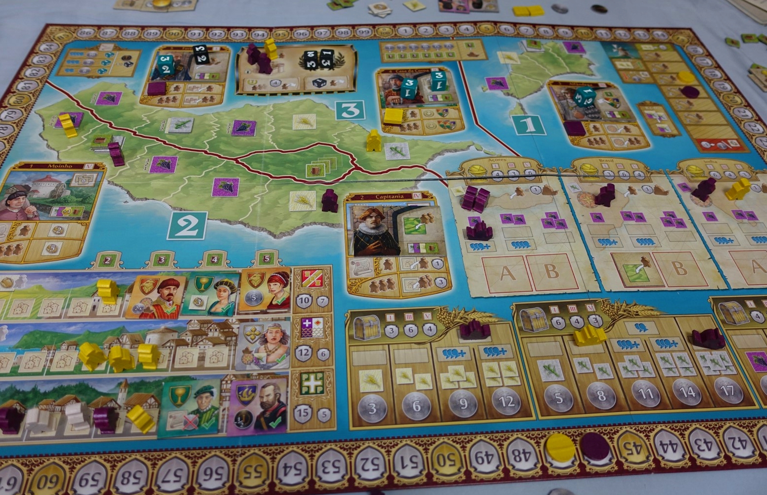 | "What's Your Game?"(WYG)出版社的幾套名作, 由左至右、上而下分別是: "明治維新"(Nippon, 2015)、"馬德拉群島"(Madeira, 2013)、"義大利貴族"(Signorie, 2015)、"葡萄酒莊"(Vinhos, 2010)、"戰國"(Zhanguo, 2014)與"瓦斯科.達.伽馬"(Vasco da Gama, 2009) |